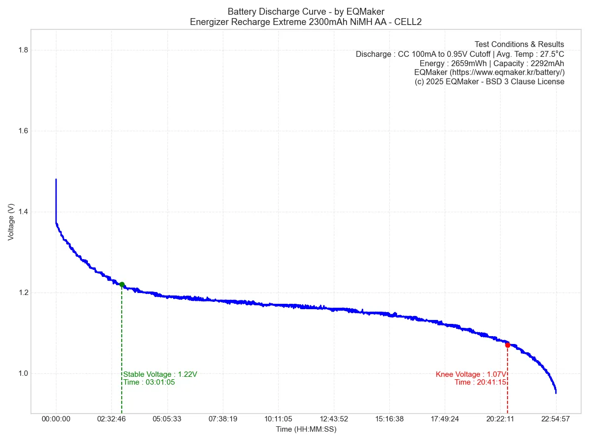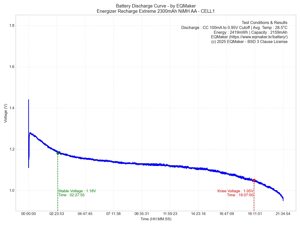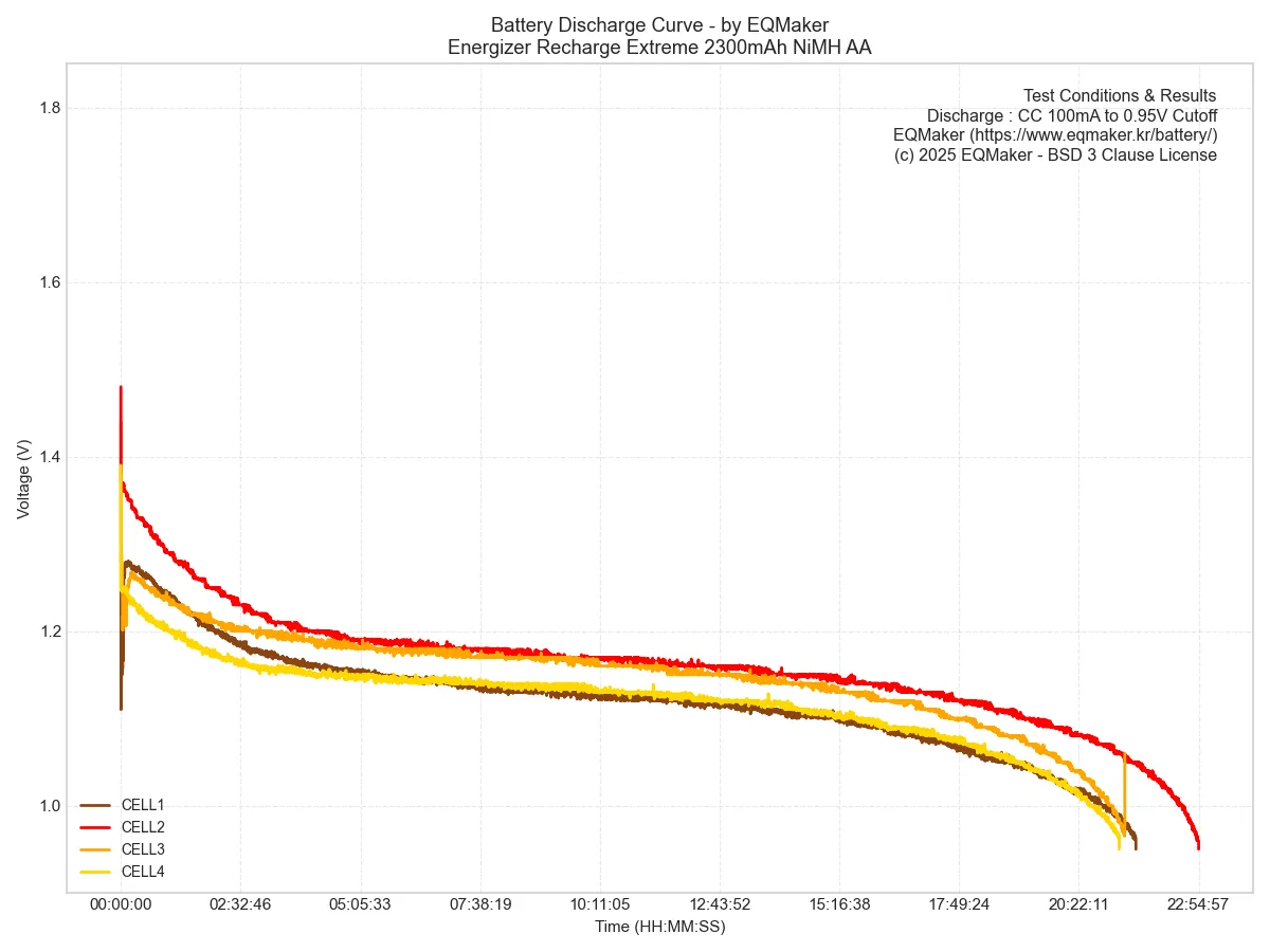 에너자이저 리차지 익스트림 2300mAh NiMH AA 충전지 용량 테스트 RAW 데이터 다운로드🔄 갱신 내역