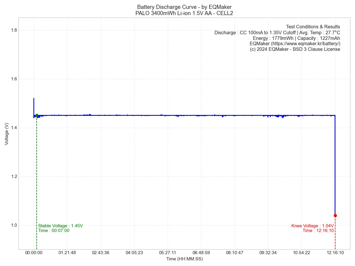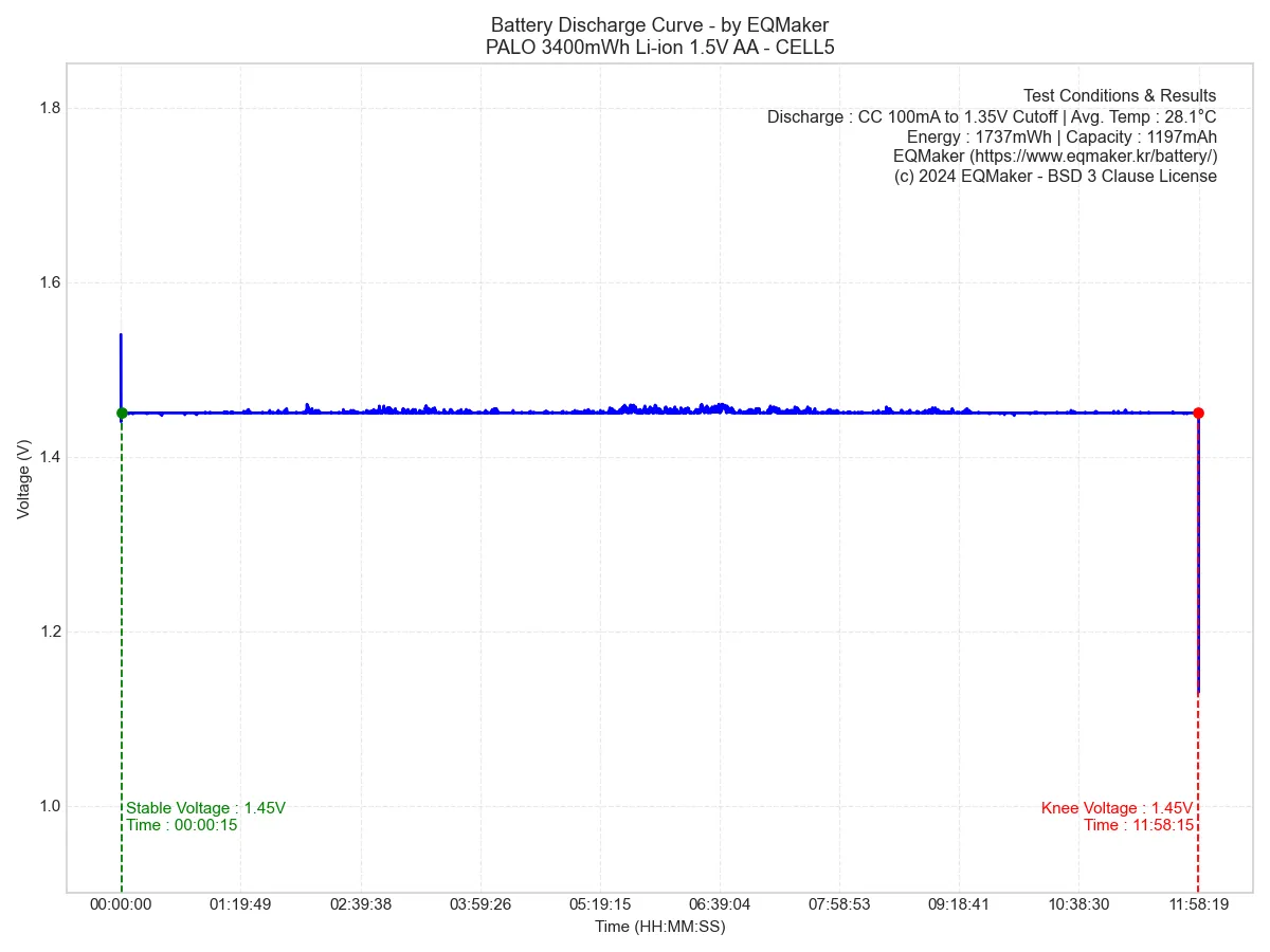 PALO 3400mWh 1.5V AA 리튬이온 충전지 용량 테스트 RAW 데이터 다운로드