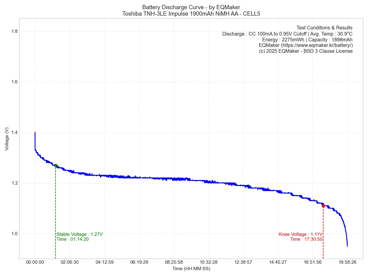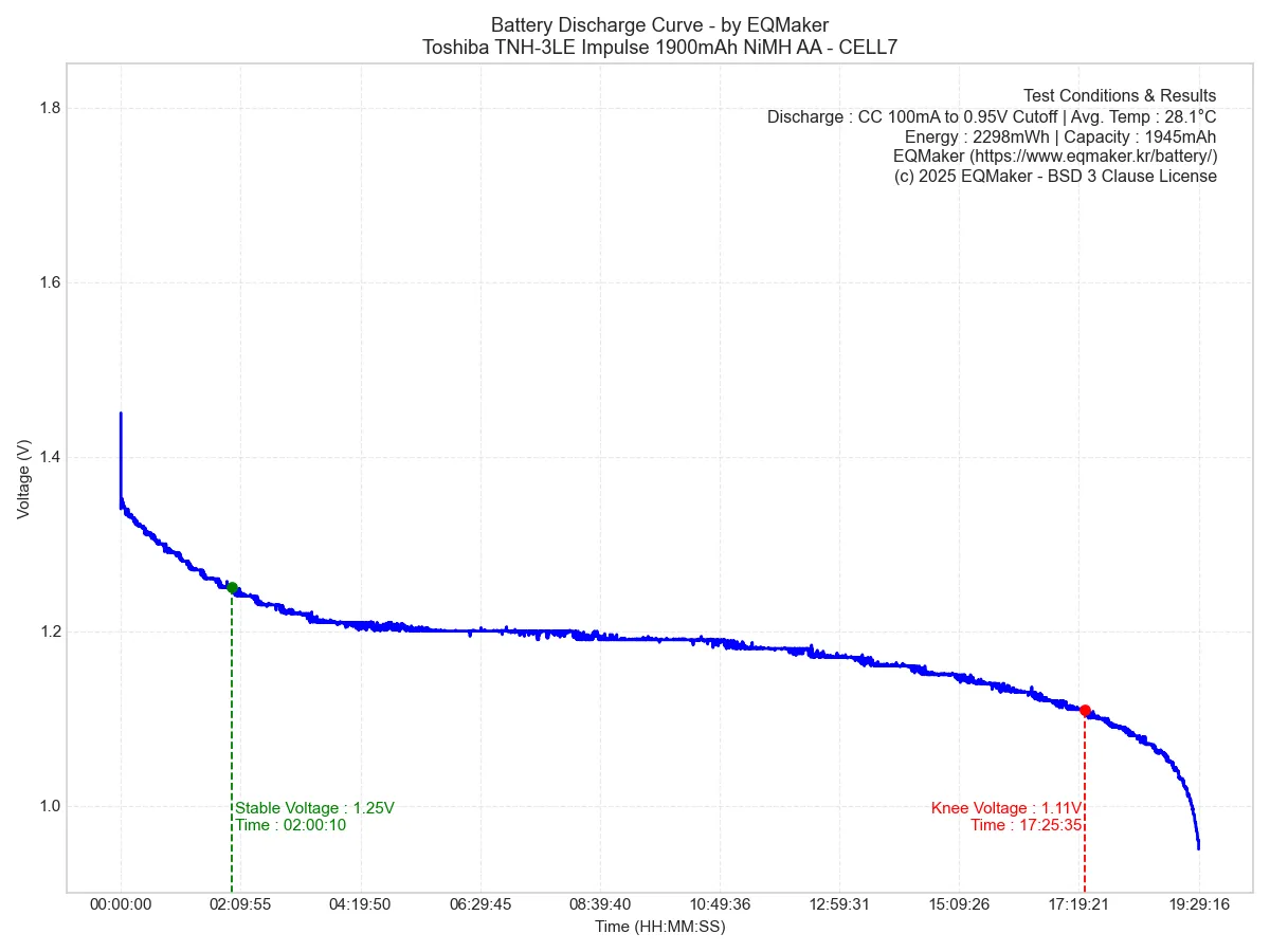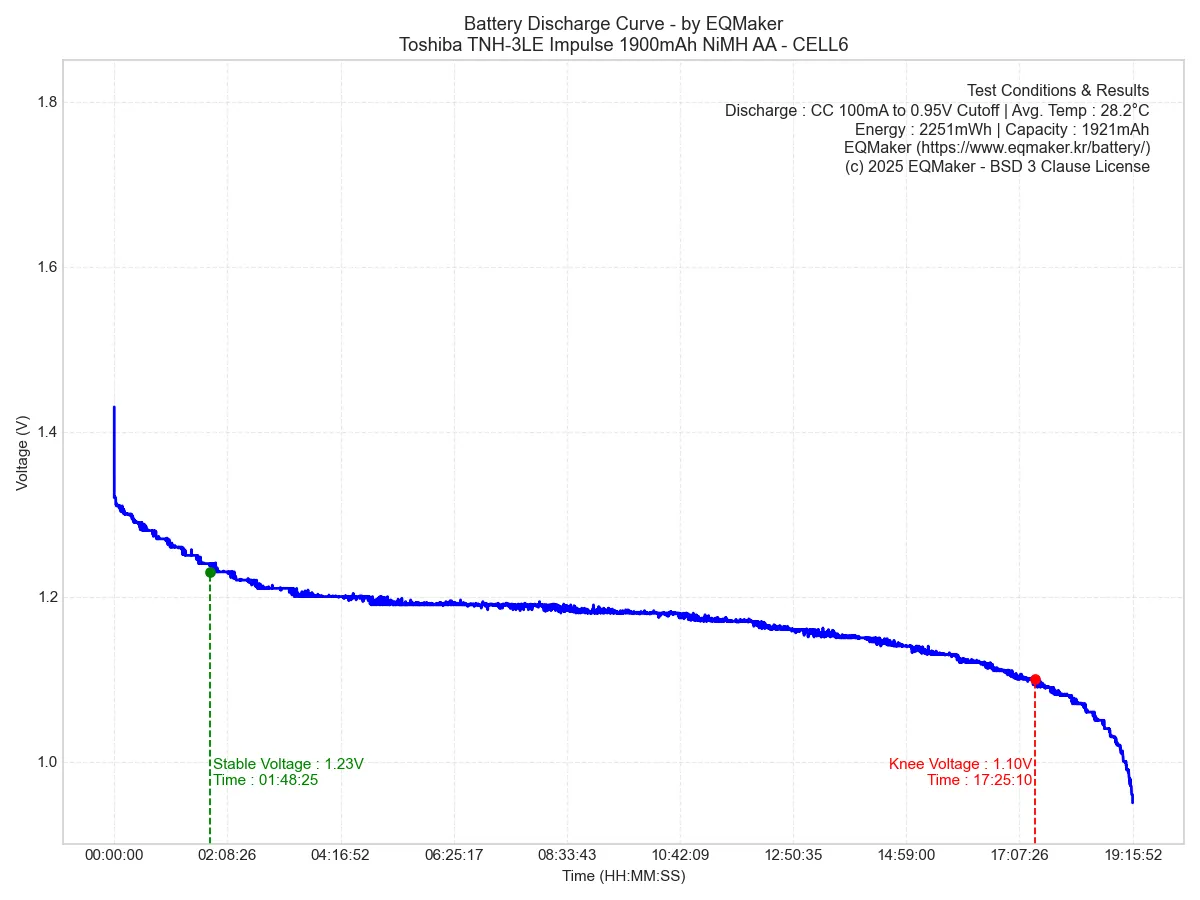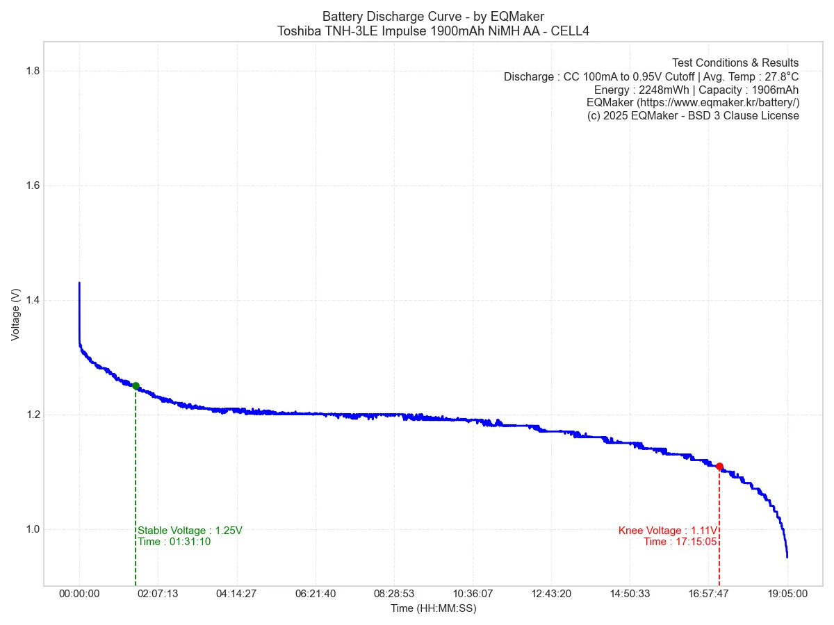 도시바 TNH-3LE 임펄스 1900mAh AA 니켈수소 충전지 용량 테스트 RAW 데이터 다운로드