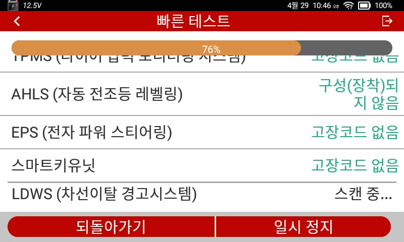 마지막으로 핸들을 좌우로 두어번 돌려 본 다음 다시 테스트를 진행하니, 고장 코드가 사라진 것을 확인할 수 있었다.